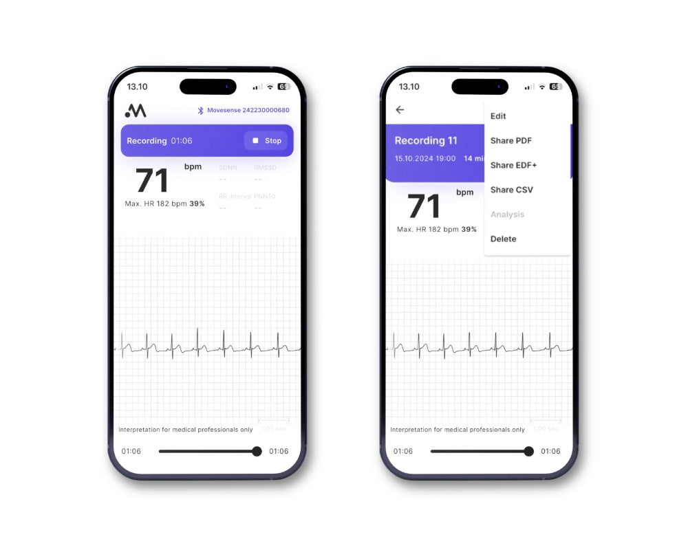 - Movesense ECG Recorder App – eine mobile Anwendung zum Anzeigen und Speichern von EKG-Daten.